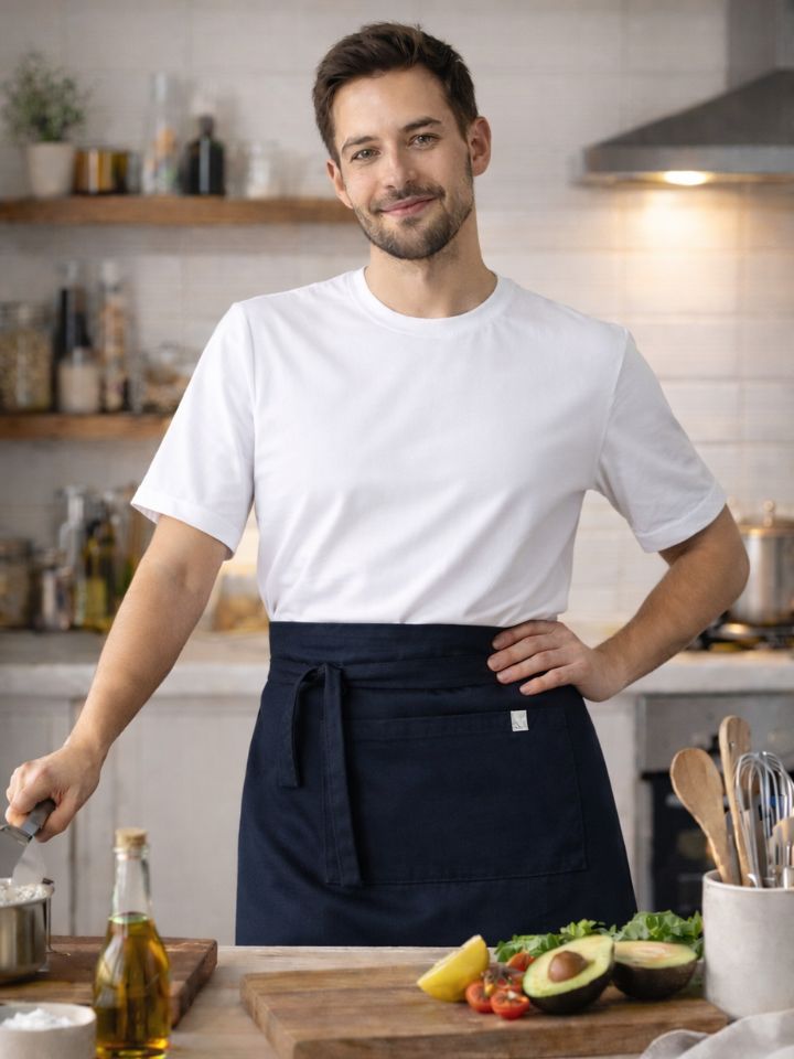 Este delantal es ideal para mozos, baristas, cocineros y personal gastronómico, brindando comodidad y libertad de movimiento durante toda la jornada laboral.